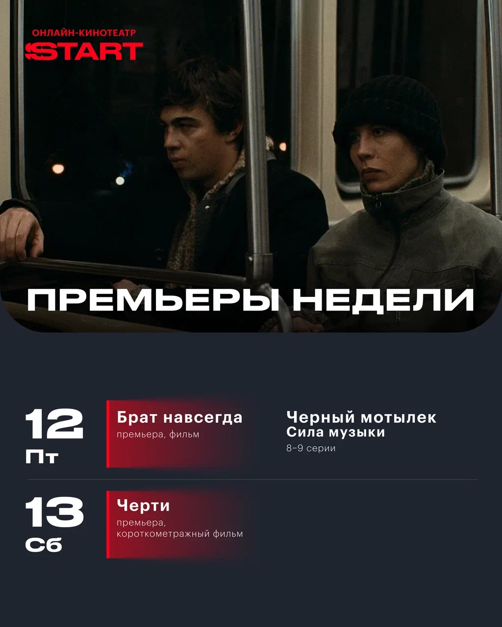 3. Путешествуем по местам съемок «Брата» в документальном фильме «Брат навсегда» в пятницу.А там снова отдыхаем (и снова с сериалами START) ❤️