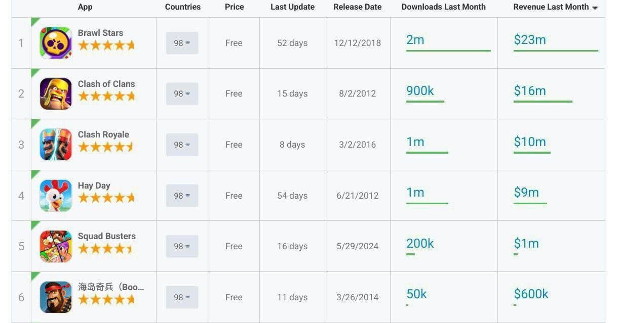 As for Squad Busters, even Hay Day is currently outperforming it in terms of stats. It’s likely that in February, Squad Busters will fall below Boom Beach.