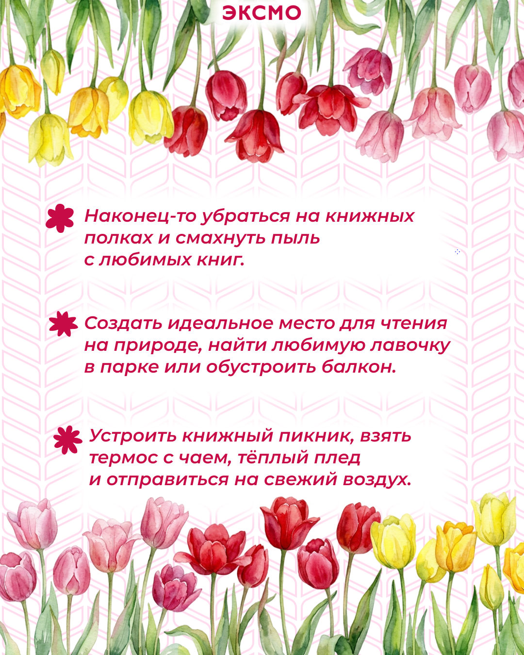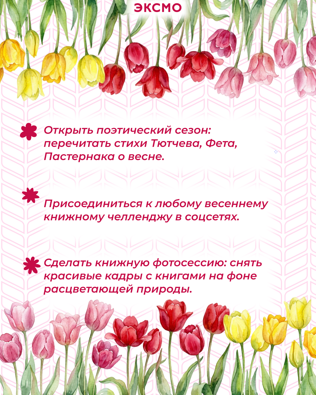 Если не знаете, как встретить весну — вот наш список активностей, которые подскажут, чем книголюбы могут заняться в эти солнечные деньки!